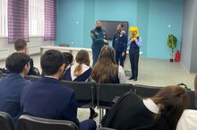 И в этот день классный час в 8 д классе провёл помощник начальника караула 72 пожарно – спасательной части 15 пожарно – спасательного отряда ФПС ГПС Главного управления МЧС России по Республике Татарстан Камиль Ганиев, также являющийся инструктором Набережночелнинского отделения ТРО ВДПО.