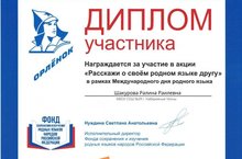 Ученицы 7 Г класса нашей школы совместно с учителем истории Шарифуллиной Диной Талгатовной приняли участие в медиапроекте «Расскажи о своём родном языке другу», приуроченном к Международному дню родного языка.