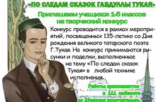 По случаю его дня рождения объявляем творческий конкурс "По следам сказок Габдуллы Тукая" среди учащихся 1-5 классов.