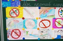 В школьной библиотеке размещена выставка плакатов и рисунков обучающихся 1-4 классов. С 1 по 15 марта в начальной школе прошел конкурс рисунков и плкатов "Мы против!" Конкурс был направлен на: