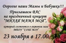 Очень ярким, душевным получился концерт, организованный учащимися школы № 39 для наших дорогих мам. В течении всего вечера для мам звучали теплые слова поздравления, песни о мамах, были показаны творческие, яркие танцевальные номера. Мамы с благодарность принимали поздравления от юных артистов. Одним из подарков для мам было выступление папы из 3 В класса.
