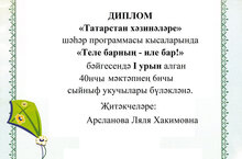 6д сыйныф укучылары “Татарстан хәзинәләре” шәһәр программасының “Теле барның – иле бар” дип исемләнгән этабында 1 нче урынны яуладылар.Укучыларыбызны һәм сыйныф җитәкчесе Л.Х.Арсланованы зур җиңүләре белән котлыйбыз, алдагы бәйгеләрдә уңышлар телибез!