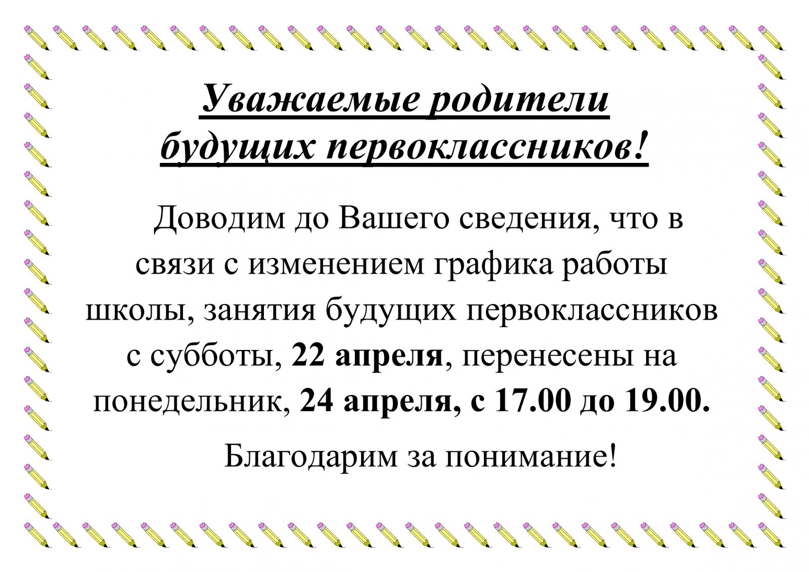 Объявление 10.04.2023