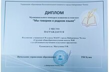 Халыкара туган тел көненә багышланган плакатлар һәм стена газеталары шәһәркүләм конкурсында катнашып, 6В сыйныф укучылары (җитәкчесе Магсумова Р.Ф.)2 нче урынга лаек булды һәм диплом белән бүләкләнде. Аларны уңышлары белән котлыйбыз!