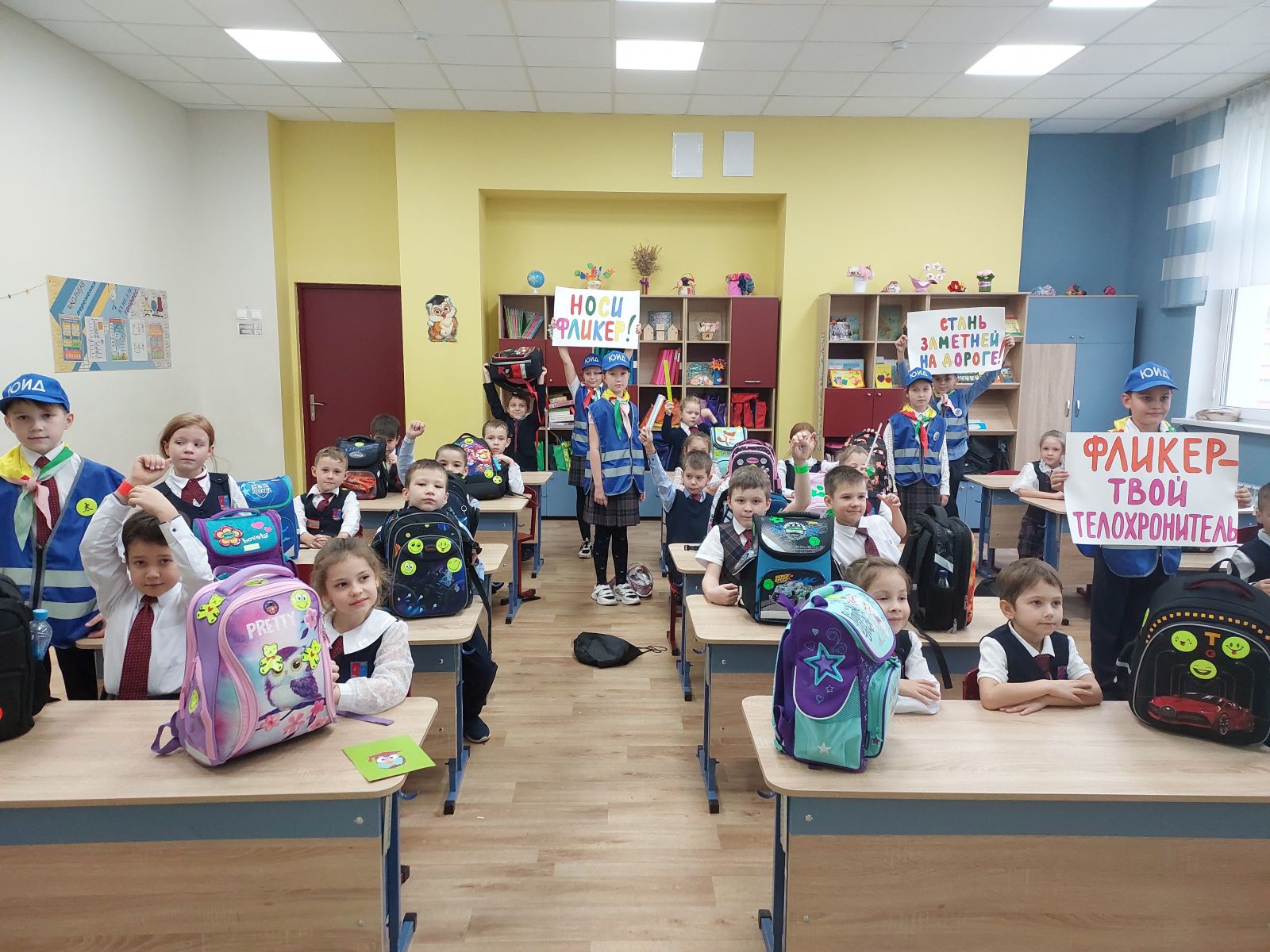 24, 25 октября 2022 года в школе прошел конкурс "Фликеров много не бывает" среди 1-4 классов в рамках городской акции по профилактике детского дорожно-транспортного травматизма "Засветись". Школьный отряд ЮИД "Дорожный патруль"(руководитель Тухфатуллина Г.Ш.) совместно со школьным советом учащихся "Я-лидер" (руководитель Бояринцева Е.А.)  провели рейд и посчитали количество всех светоотражателей (фликеров) в классах.