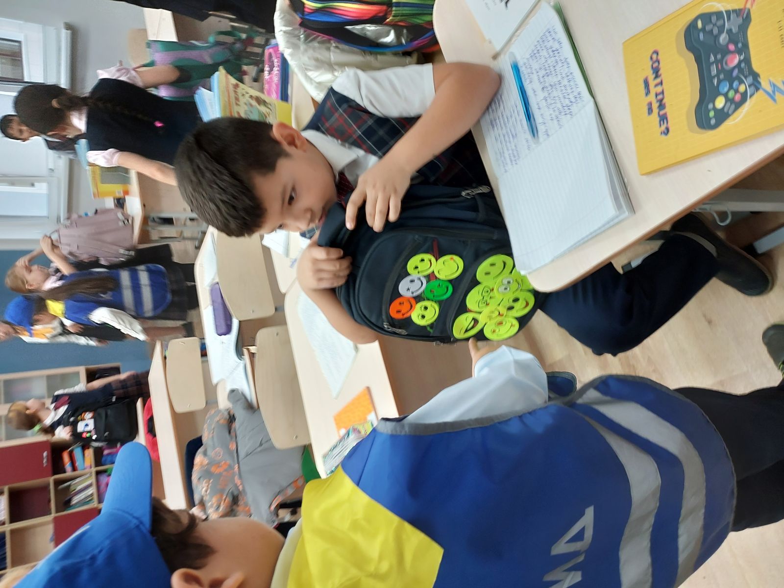 С целью профилактики дорожно-транспортного травматизма члены отрядов ЮИД "Дорожный патруль" (4М класс, руководитель отряда Тухфатуллина Г.Ш.) и "Зеленый свет" (4Ж класс, руководитель отряда Нурлыгаянова Л.Ф.) в начале 2023/2024 учебного года посетили обучающихся 1 классов школы, рассказали им о световозвращающих элементах, об их видах и значимости использования фликеров в темное время суток на неосвещенной проезжей части. Каждому первокласснику школы (327 обучающихся) юные инспекторы вручили световозвращающую подвеску.