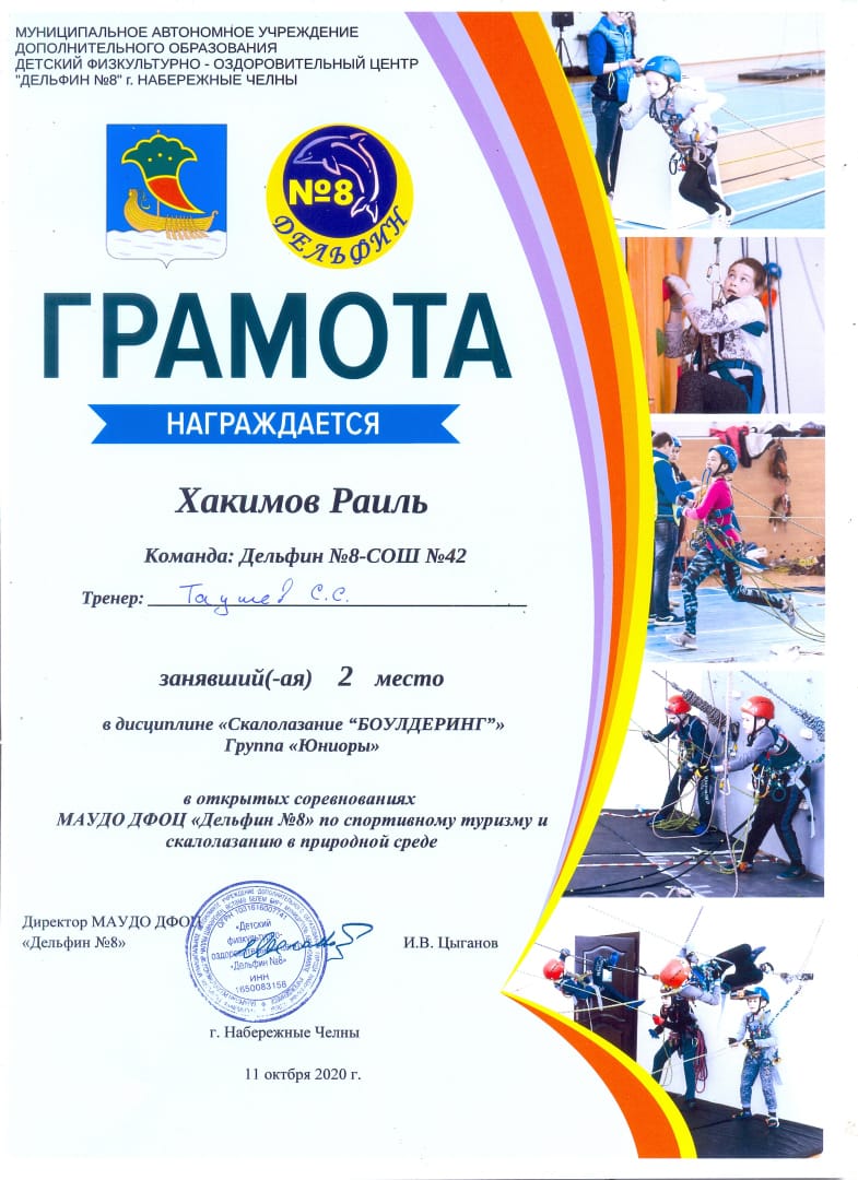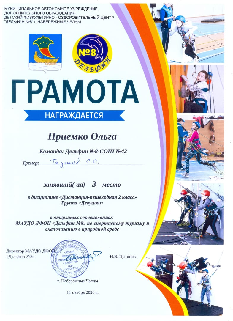 Грамота Открытые соревнования по спортивному туризму и скалолазанию в природной среде 3 место