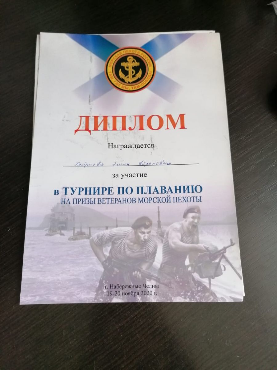 Диплом участника Турнира по плаванию на призы ветеранов морской пехоты