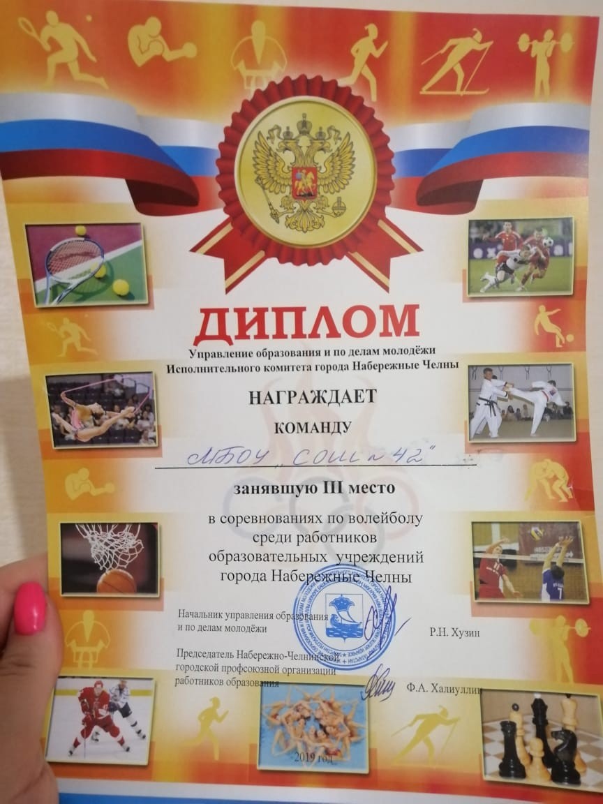 Диплом Соревнования по волейболу среди работников образовательных учреждений 3 место