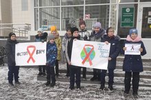 Участники отряда SMS - дети провели акцию "Красная лента", приуроченную всемирному дню борьбы со СПИДом. -