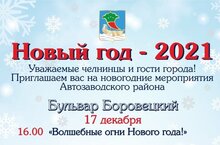 17.12.2020 в 16.00 на бульваре Боровецкий состоится праздничная программа «Волшебные огни нового города!».