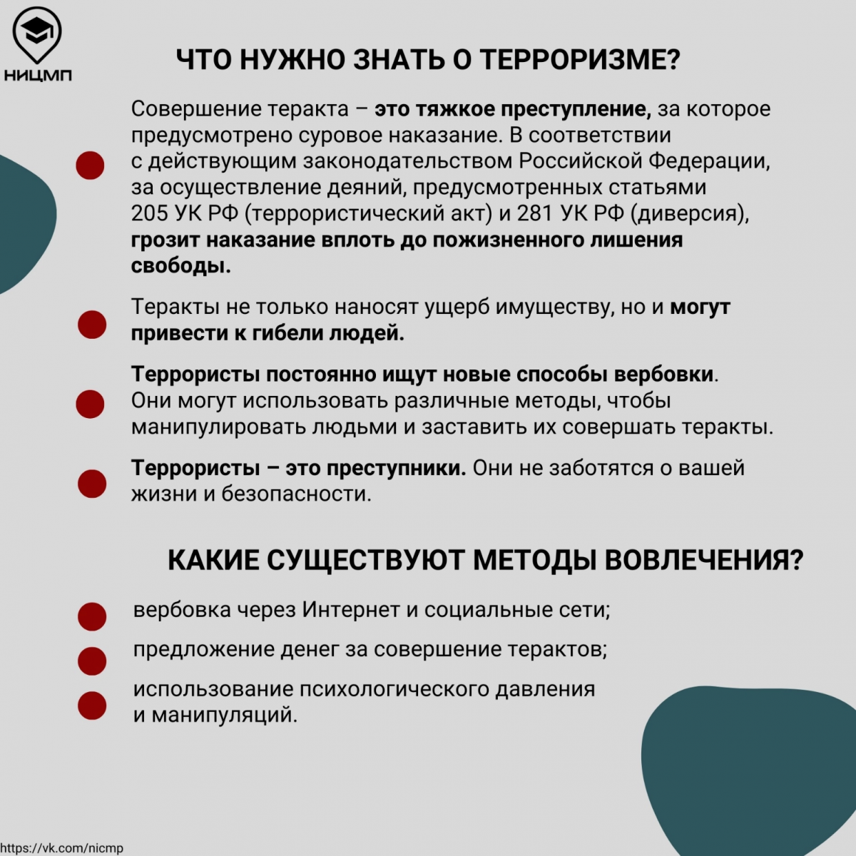 Для повышения осведомленности граждан о ключевых правилах безопасного поведения в случаях террористических угроз специалисты НИЦ Мониторинга и профилактики разработали информационные карточки с пошаговыми алгоритмами и четкими инструкциями о том: