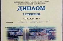 15 апреля состоялась городская интеллектуально-развлекательная игра "Астрономический калейдоскоп". Команда нашей школы, в составе которой были учащиеся Гусева Милена, Загидуллина Ангелина, Новикова Софья, Десятова Софья заняли 1 место!!! Так держать!!!