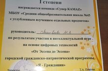 Первое место в интеллектуальном конкурсе городской программы "Я-гражданин"/"Я-гражданин" шәһәр программасының интеллектуаль конкурсында беренче урын 31.10.2023