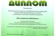 Абсолютный победитель муниципального конкурса на лучшую организацию экологической работы/Экологик эшне иң яхшы оештыру буенча муниципаль конкурста абсолют җиңүче 16.02.2021