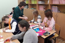 В нашей школе в рамках акции Дни единых действий «Вам дарим доброту и радость» было организовано мероприятие - «День добрых начинаний». Из РЦ «Солнышко» была приглашена педагог Уламасова А.В., которая познакомила детей с технологией изготовления открыток и помогала на начальном этапе.