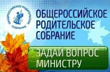 Стартовал сбор вопросов к Общероссийскому родительскому собранию с участием Министра образования и науки О.Ю. Васильевой 30 августа 2017 года. Задать свой вопрос Министру можно уже сейчас. На сайте Минобрнауки России для этого открыт специальный раздел «Общероссийское родительское собрание» http://минобрнауки.рф/родительское-собрание.
