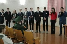 В актовом зале школы прошло торжественное вручение благодарственных писем учащимся 9, 10 классов за несение Вахты памяти на Посту №1 у Вечного огня. На мероприятии был приглашен почетный гость-гвардии рядовой мотострелковых войск Геккер О.Е.