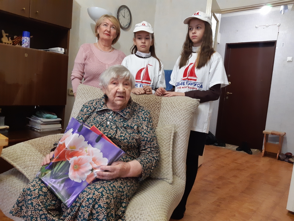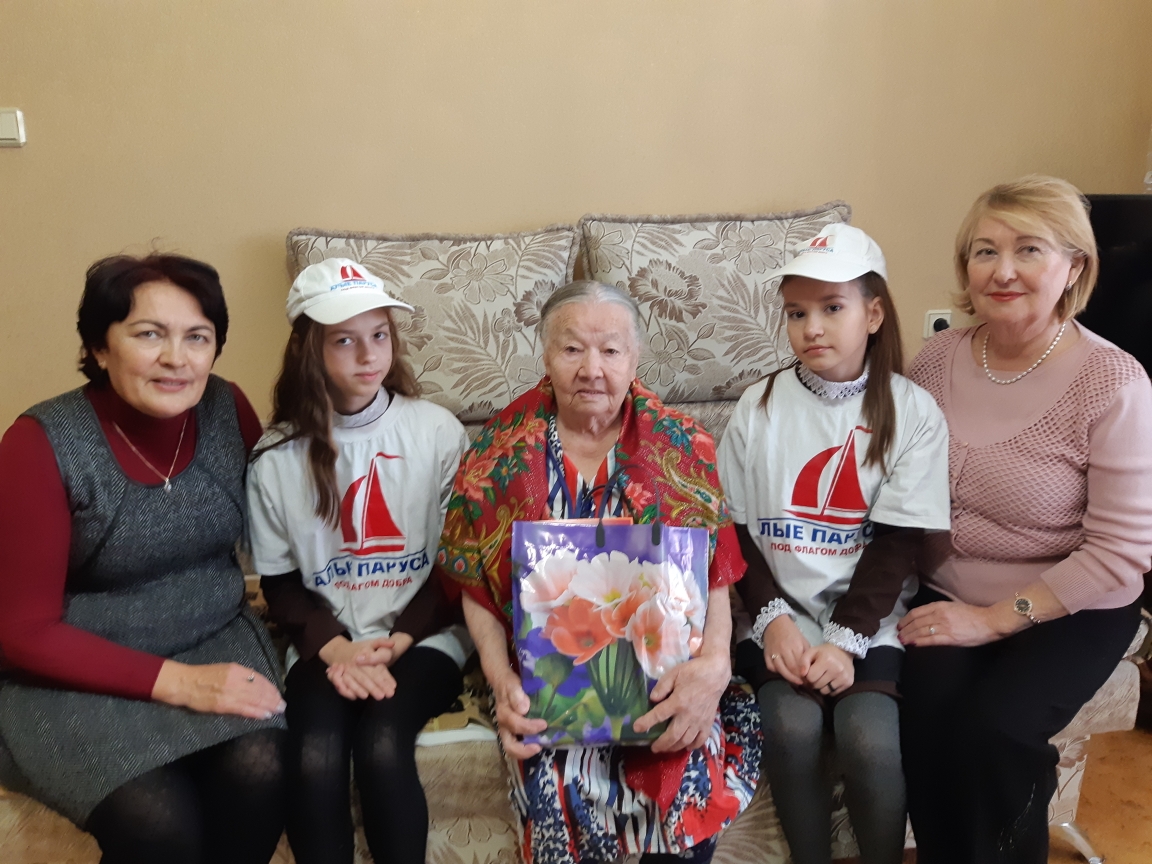 Тимуровским отрядом "Алые паруса" были посещены: ветеран Великой Отечественной войны Вахитова Бибинасима и блокадница Старкова Нина Антоновна. Ребята прочли поздравления и вручили подарки.