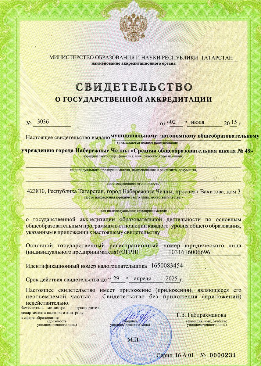 Муниципальное автономное общеобразовательное учреждение города Набережные Челны «Средняя общеобразовательная школа №48»