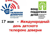 17 мая- Международный день Детского телефона доверия. В 2022 году в рамках Всероссийского проекта «Детский телефон доверия» пройдет Всероссийская онлайн-акция «Марафон доверия».