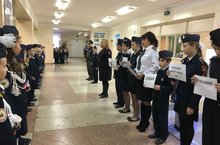 10 ноября в рамках празднования Дня милиции прошло одно из самых важных событий для школы - принятие торжественной «Клятвы кадета». Традиционно, торжественное построение началось со сдачи рапорта директору школы Р.Р.Абдуллиной и вноса Знамени школы. И вот наступили самые волнующие минуты для кадет учащихся 5 классов, которым предстояло перед лицом своих товарищей и педагогов школы принести «Клятву кадета», По традиции, «Клятву кадета» у воспитанников принимали сотрудники ГИБДД УВД по городу Набережные Челны.