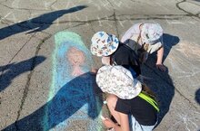 Сегодня пошел конкурс рисунков на асфальте к Дню России