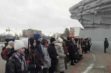 Билгесез солдат көнендә мәктәп укучылары мәңгелек утка чәчәкләр салдылар һәм сугышта һәлак булган солдатларны искә алдылар.