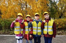 Учащиеся 3В класса МБОУ "СОШ №5" активно занимающиеся пропагандой ПДД получили почетное право называться "Юными инспекторами дорожного движения".