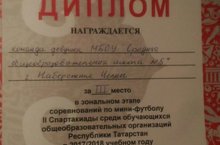 Поздравляем с победой! 23.01.2018 МБОУ СОШ №5" заняла III место в зональном этапе соревнований по мини-футболу II Спартакиады среди обучающихся общеобразовательных организаций Республика Татарстан. Преподаватель: Назаров Э.В.