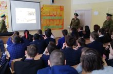 На базе МБОУ "СОШ №5" состоялась встреча учащихся 8 классов с сотрудниками пограничной службы. В процессе мероприятия учащиеся просмотрели презентацию о том как происходит охрана государственной границы. Учащиеся выразили интерес к представленной информации и задавали вопросы. Конечно, больше вопросов было задано по поводу условий поступления и обучения и проживания в военных вузах.