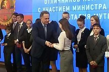 27 октября в Международном мультимедийном пресс-центре МИА "Россия сегодня" (г. Москва) состоялась пресс-конференция "О промежуточных итогах внедрения Всероссийского физкультурно-спортивного комплекса "Готов к труду и обороне" с участием министра спорта Российской Федерации В.Л. Мутко. В рамках данного мероприятия вручались золотые знаки отличия ВФСК ГТО обучающимся общеобразовательных организаций пилотных субъктов Российской Федерации по апробации комплекса ГТО. На этом мероприятии тооржественно вручили золотой знак отличия нашей ученице - Тагировой Венере Альбертовне.