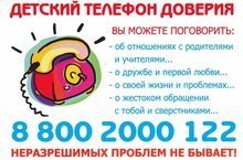 Детский телефон доверия 8-800-2000-122 создан для оказания психологической помощи детям, подросткам и их родителям в трудных жизненных ситуациях.