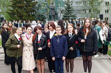 9 май көнне мәктәбебезнең унынчы сыйныф укучылары педагоглар белән бергә Җиңү паркының мемориаль мәйданында Җиңү көнен бәйрәм итү тантанасында актив катнаштылар