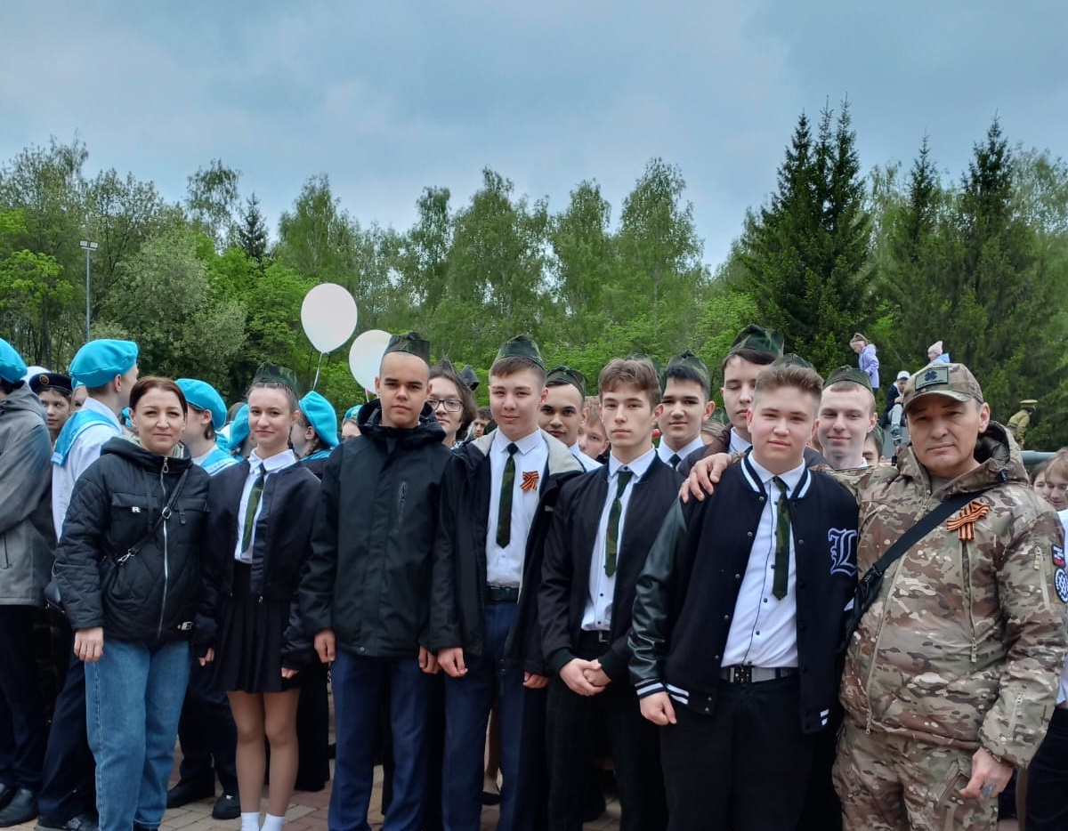 9 май көнне мәктәбебезнең унынчы сыйныф укучылары педагоглар белән бергә Җиңү паркының мемориаль мәйданында Җиңү көнен бәйрәм итү тантанасында актив катнаштылар. Чара «оныклар да Җиңү шатлыгын данлаячак» исеме астында оештырылды, ул буыннар бәйләнешен һәм ветераннарның батырлыгына хөрмәт символы булып тора. Балалар өчен бу вакыйга мәктәп укучыларының берсенең әти — әнисе - укучының әтисе - күптән түгел генә махсус операция зонасыннан өйгә кайткан Бикьянов Илдар Рәис улы катнашуы белән аеруча үзенчәлекле булды . Аның булуы парадны батырлык һәм батырлык үрнәге итте, Ватанны саклаучыларның батырлыгы турындагы хәтерне ныгытты. . Алып баручылар сөйләгән марш һәм гимн авазлары астында катнашучылар һәлак булганнарны бер минут тынлык белән искә алдылар, мәңгелек утка чәчәкләр салдылар һәм сугыш елларының җыр репертуарын башкардылар. Мондый массакүләм чара укучыларыбызга бәйрәмнең әһәмиятен тирәнрәк аңларга, өлкән буынны хөрмәт итәргә һәм халыклар арасында тынычлык һәм татулыкның мөһимлеген истә тотарга ярдәм итә. Оештыручылар катнашучыларның югары дәрәҗәдә катнашуын билгеләп үтәләр, россиялеләрнең яшь буынында актив гражданлык позициясе формалашуга ярдәм итә торган мөһим гражданлык вакыйгасын әзерләүдә актив ярдәм иткәннәре өчен ата-аналарга һәм педагогларга рәхмәт белдерәләр.