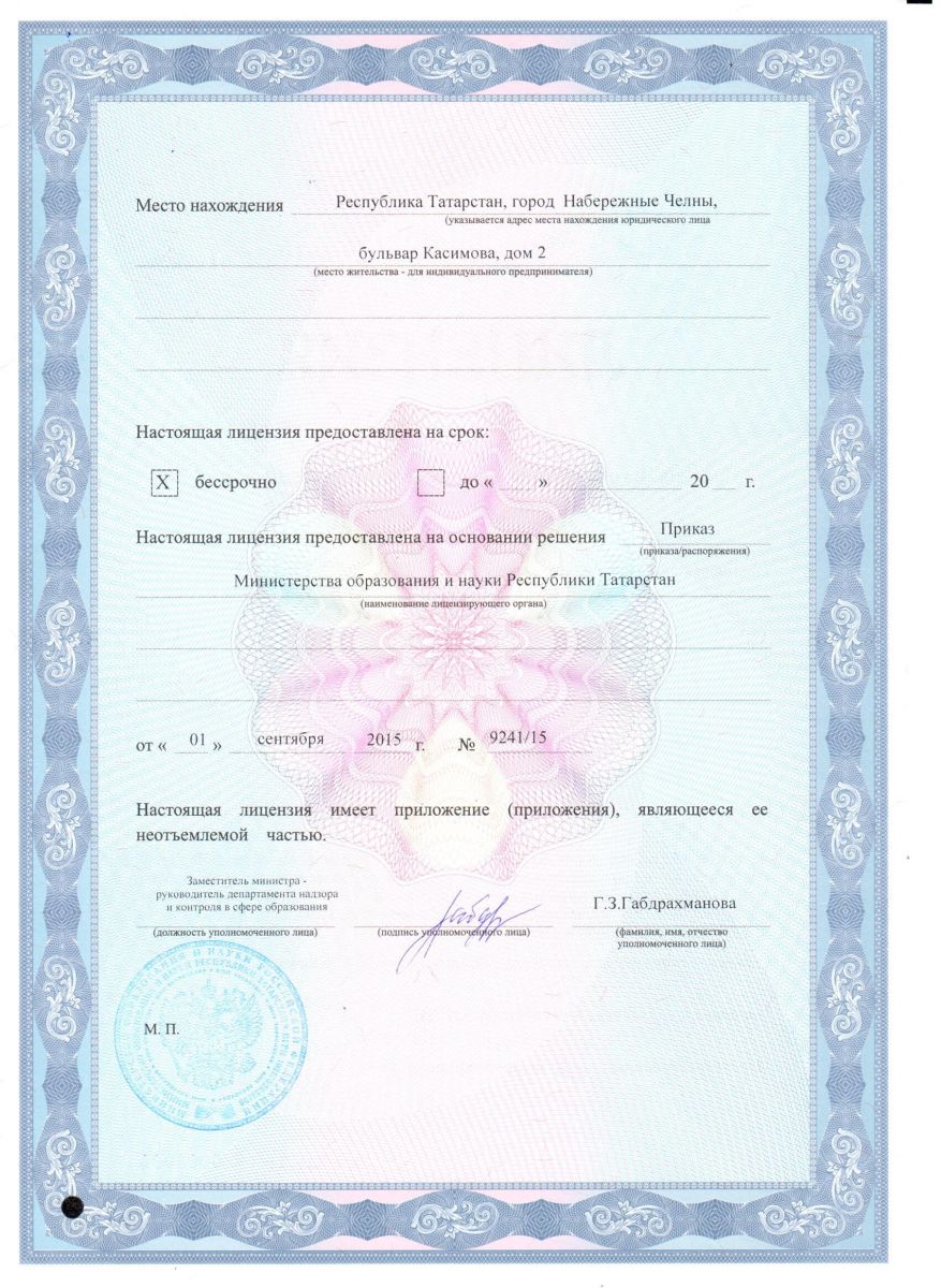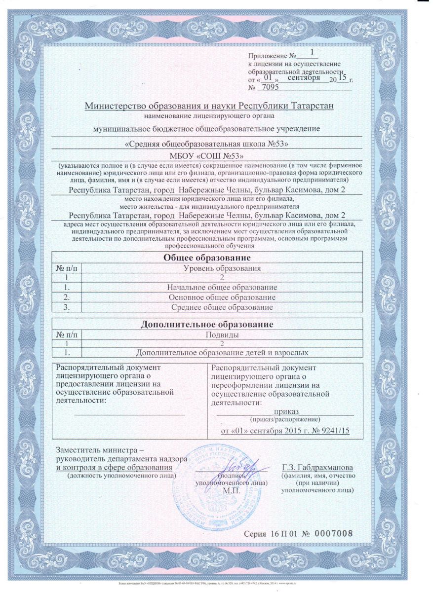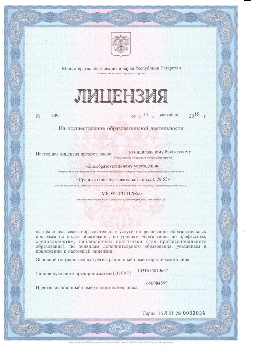серия 16Л01 №0003034 регистрационный №7095 от 01 сентября 2015г.,