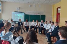 Мәктәпкә КамТЭКта укучы студентлар килде. Алар 9 нчы сыйныф укучыларына колледж турында мәгълүмат бирделәр, укырга керү турында сөйләделәр. -