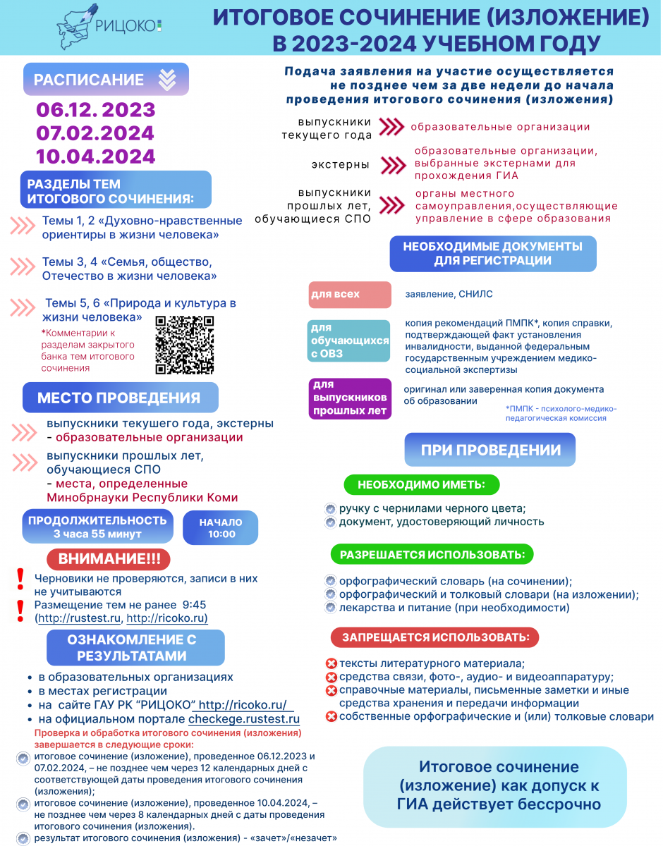Итоговое сочинение в рамках ГИА-2023 выпускники 11-класса будут писать 6 декабря 2023 года. Также календарь ГИА предполагает две резервные даты, в которые можно будет написать сочине-ние, если по уважительной причине не получится сделать это в декабре: 7 февраля 2024 года; 10 апреля 2024 года. Подробнее: https://2024god.com/itogovoe-sochinenie-po-literature-v-2024-godu-temy-napravleniya/