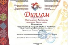 Республикакүләм Балалар фестиваленең “Милли кием ” номинациясендә 6 А сыйныфы укучысы Вохидова Магдия тадҗик милли киемендә 1 дәрәҗәдәге диплом яулап алды.
