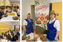Сегодня ученики вместе с учителями отведали главное блюдо времен Великой Отечественной войны - фронтовую кашу. По традиции это была гречневая каша с тушенкой. Для солдат в те годы это было самым настоящим лакомством. Акция «Солдатская каша» призвана воссоздать дух солдатской общины, рассказать о том, как жили воины-освободители в самое трудное для Родины время. -