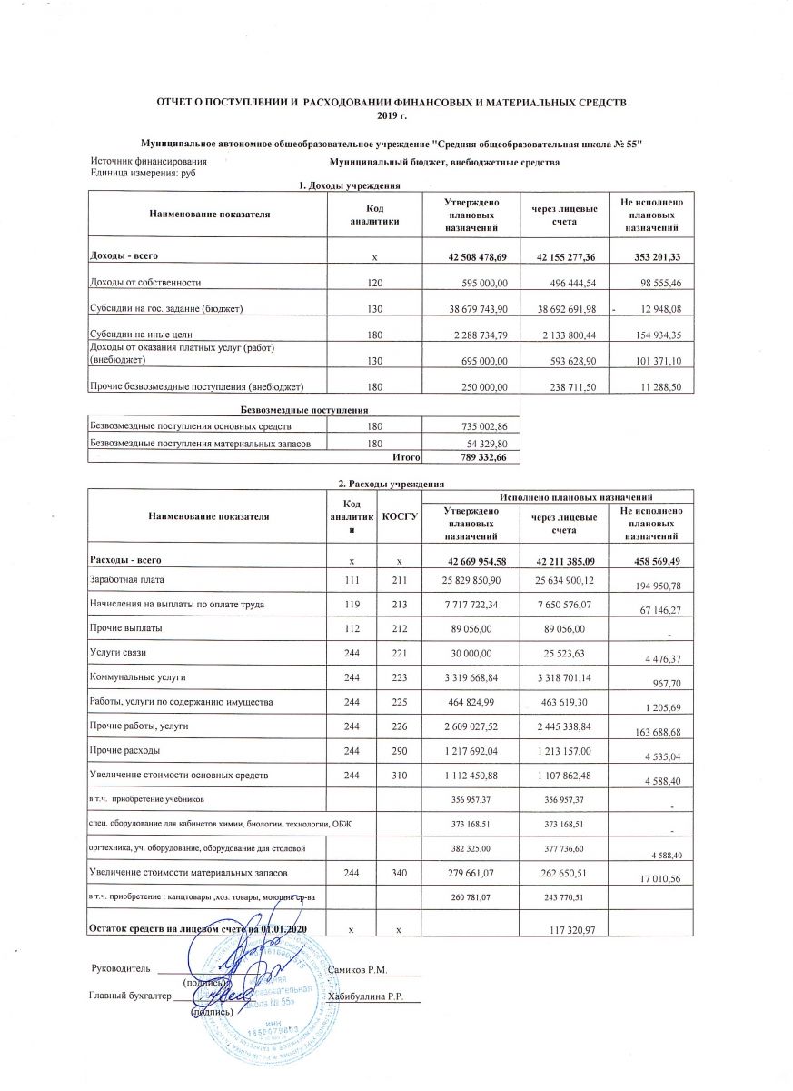 Отчет о поступлении и расходовании финансовых и материальных средств 2019 г.