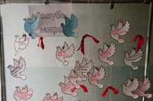 На базе школы 02.02 была проведена акция "Голубь мира", в которой приняли участие 1-4 классы. Учащиеся сделали из бумаги голубей, на которых написали имена своих дедов и прадедов, участвовавших в Великой Отечественной войне