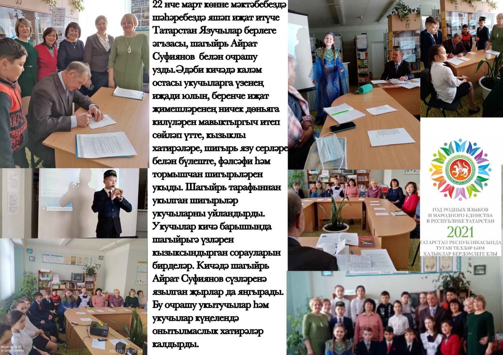 22 марта на базе нашей школы прошла встреча с татарским писателем Айратом Суфияновым.