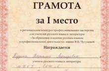 Поздравляем учителя русского языка и литературы Кузину Наталью Леонидовну, занявшую 1 место в региональном конкурсе профессионального мастерства для учителей русского языка и литературы "За образцовое владение русским языком в профессиональной деятельности" имени В.П. Чугуновой.
