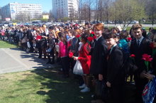 Сегодня в сквере Габдуллы Тукая состоялось торжественное мероприятие «Тукайга чәчәкләр китерик» - «Цветы для Тукая», посвященное 130-летию со дня рождения национального героя татарской поэзии Габдуллы Тукая. Почтить память поэта пришли учащиеся 7А класса. На протяжении нескольких часов возле памятника поэту звучали его стихотворения. В конце мероприятия ребята возложили цветы к подножию памятника.
