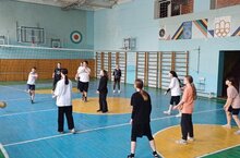 В спортивном зале школы состоялся дружеский матч по волейболу между командой 8А и сборной 5-7х классов. Игра была жаркой и захватывающей, команды постоянно атаковали позиции друг друга.
