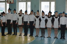 Сегодня в актовом зале прошёл школьный этап городского конкурса «Смотр строя и песни» среди учащихся 5-7 классов. Команды в течении 2-х недель ежедневно тренировались в строевой подготовке.