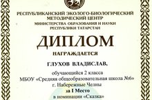 Подведены итоги Республиканского открытого детского конкурса «Всякая птица своим клювом сыта» в рамках экологической акции «Встреча зимующих птиц».В номинации «Сказка» Глухов Владислав, учащийся 2Д класса занял 1 место.В номинации «Ночной охотник – Сова (рисунок)» Тимохина Виктория, ученица 3А класса заняла 3 место.За творческую работу (эссе и сочинение) учащиеся Саматова Арина/1В класс; Рашитов Артур/4Б класс, Сахбиев Эмиль/4В класс награждены ПОЧЁТНОЙ ГРАМОТОЙ Республиканского эколого-билогического методического центра и Министерства образования и науки Республики Татарстан -