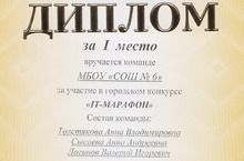 Поздравляем команду обучающихся 9 А класса - Логинова Валерия, Сысоеву Анну и Толстякову Анну с победой в городском конкурсе "IT-марафон"!