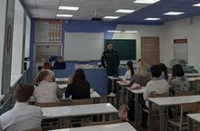 Выпускник школы Злобич Л., а теперь курсант «Вольского военного института материального обеспечения им. генерала армии Хрулёва», и курсант Хузин С. провели профориентационную беседу с обучающимися 11А класса. Курсанты выступили перед выпускниками с рассказами о Военной академии, истории её создания, основных факультетах и выдающихся выпускниках. Обучающиеся узнали о порядке и требованиях, предъявляемых для поступления в образовательную организацию, и получили приглашение на день открытых дверей. Рассказы сопровождались презентационным и видео-материалами о Вольском филиале Военной академии МТО, в ходе которых ребята задавали много вопросов, связанных со службой в армии.